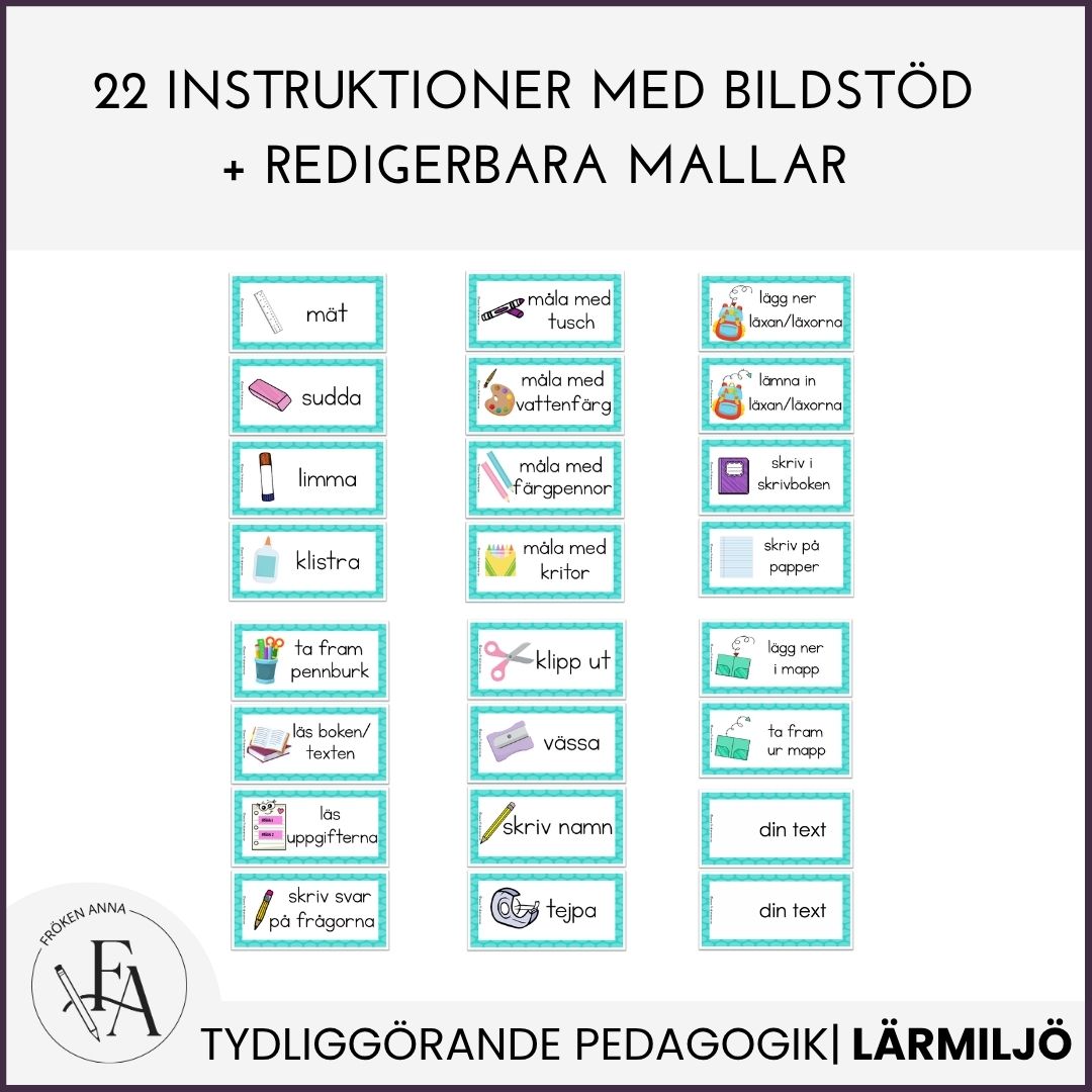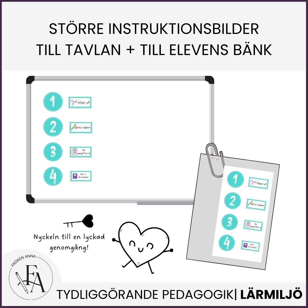 - Stora bilder till tavlan, och små till elevernas bänkar, för de som behöver dubbla genomgångar