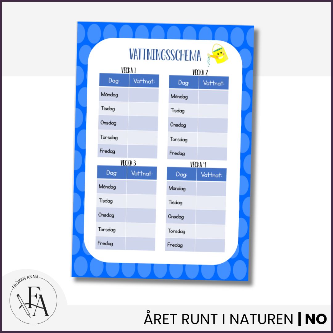 Eleverna får följa sin plantering steg för steg genom att rita och beskriva vad som händer – från planteringstillfället och flera veckor framåt. Häftet innehåller även ett praktiskt vattningsschema som fylls i dag för dag.