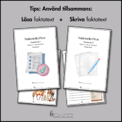 Detta material innehåller övningsuppgifter och strukturerad vägledning som hjälper elever i årskurs 3 att träna på att skriva faktatexter, en del av de nationella proven i svenska. Med tydliga stödord och varierade teman får eleverna möjlighet att utveckla sin förmåga att skriva informativa och välstrukturerade texter.