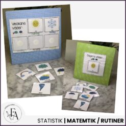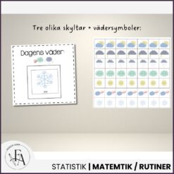 I detta paket ingår vädersymboler samt skyltar för dagens, veckans och månadens väder.