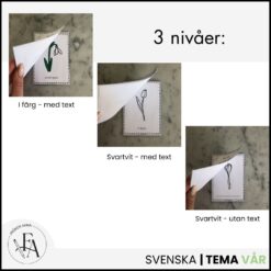 Ett fint och lärorikt material där barnen får lära sig känna igen våra vanligaste vårblommor. Perfekt som temaarbete under vårterminen – ute i naturen eller inomhus!